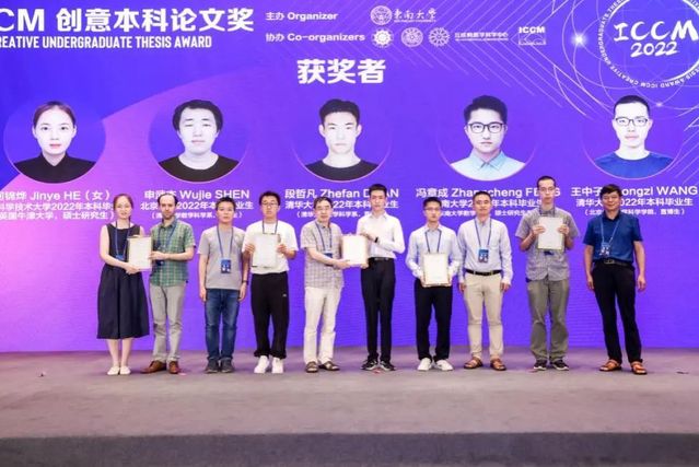 2022年7月31日至8月5日, 第九届世界华人数学家大会在南京召开。大会期间颁发了第六届ICCM毕业论文奖以及首届ICCM创意本科论文奖等奖项,在200余名国内外知名专家学者的见证下,澳门巴黎人娱乐城 学子朱诗勇和冯章成斩获佳绩,分别获得ICCM硕士毕业论文银奖和首届ICCM创意本科论文奖。
