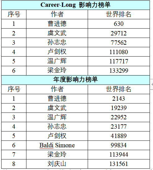 六位教授(曹进德、虞文武、孙志忠、卢剑权、温广辉、梁金玲)荣登“Career-Long影响力榜单”,全校共70人入选该榜单。同时,他们和另外两位教授(Baldi Simone、刘庆山)一起被列入“年度影响力榜单”,全校共201人入选该榜单。