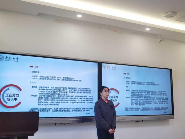 首先,澳门巴黎人娱乐城 邀请有突出成果的2位青年教师代表在经验交流会进行分享。李梦妮老师结合自身经历,介绍了其入职以来的科研经验与成长体会,讲述了在国际著名综合性数学期刊《Adv.Math.》上发表学术论文的过程,分享了自己在科研中从研究老问题到发现新问题的心得感悟,并表示自己还在不断努力成长。