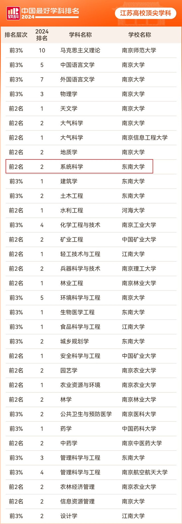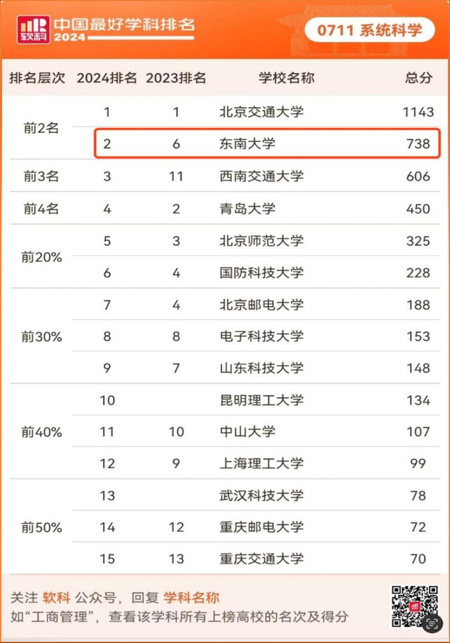 软科中国最好学科排名榜单包括94个一级学科,各个学科排名的对象是在该一级学科设有学术型研究生学位授权点的所有高校(截止到2023年底),发布的是在该学科排名前50%的高校,共有486所高校的4924个学科点上榜。(//www.shanghairanking.cn/)