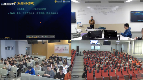下午4点,关老师带领着四校近200名师生,以一个折纸小游戏作为同步课堂的开端。通过这个小游戏,关老师旨在启发学生认识到AI时代两项至关重要的学习能力:提出问题的能力以及清晰表达自己的能力。这两项能力的培养,正是关老师在AI和知识图谱支持下,实施线上线下融合教学的核心基石。