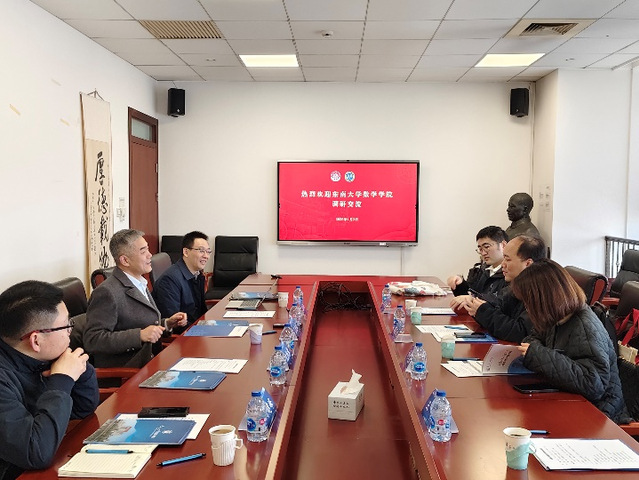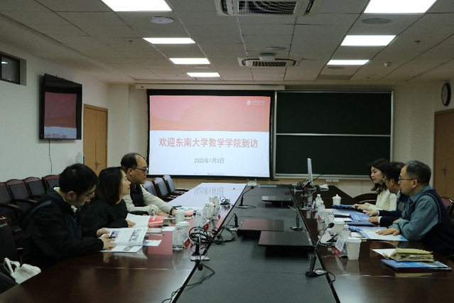 1月3日上午,澳门巴黎人娱乐城 虞文武院长一行赴上海交通大学数学科学澳门巴黎人娱乐城 调研。上海交通大学数学科学澳门巴黎人娱乐城 楼元教授代表澳门巴黎人娱乐城 对虞文武院长一行的来访表示热烈欢迎,楼院长详细介绍了澳门巴黎人娱乐城 历史,并分享了学科方向、师资队伍概况、科研项目、专业设置、学生就业等方面的具体情况。虞文武院长随后介绍了澳门巴黎人娱乐城 学科建设、科研平台、科研项目、特色研究方向、行业应用、人才培养等方面的情况。双方就学科建设、人才培养与引进、科研团队建设、研究生培养、师资建设等方面进行了深入交流和探讨。上海交通大学数学科学澳门巴黎人娱乐城 副院长谢峰、副院长朱辉钰、科研与学科办公室主任郭恒亮、澳门巴黎人娱乐城合作 副院长许文盈、院长助理王和、至善博士后刘洪喆等参加了座谈交流。