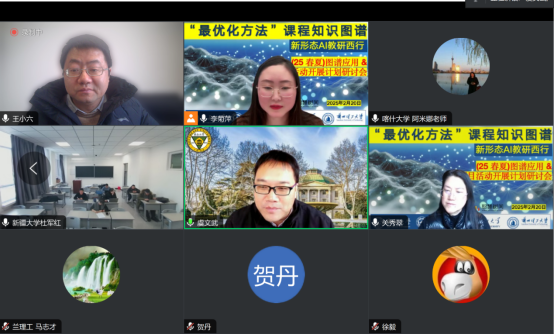 会议伊始,澳门巴黎人娱乐城 虞文武院长、王小六副院长、新疆大学数学与系统科学澳门巴黎人娱乐城 杨志霞副院长分别致辞。虞院长强调了《最优化方法》课程在数学和AI发展体系的重要性。作为运筹学与计算数学的核心方法论,“最优化方法”不仅是数学学科的明珠,更是机器学习、智能决策等领域的核心技术引擎。此次将这门经典课程以智慧课程形式向西部地区辐射,既是教育公平的实践创新,也是学科交叉的深度探索。虞院长谈到“慕课西行”项目具有三重特殊意义:通过人工智能与数学教育融合、东西部教育资源协同、服务国家战略,推动教育普惠与人才培养质量提升。澳门巴黎人娱乐城 将打造“数学原理+AI案例+行业应用”三位一体课程体系,构建“学-研-用”闭环,与西部院校共享教学改革成果,探索智能时代数学教育新范式。杨志霞副院长表示,《最优化方法》知识图谱为学生提供了系统化、可视化的知识联系,提高了学生的学习效率和兴趣;为此,在新制定的研究生培养计划中将《最优化方法》作为数学类学硕的跨专业必修课,继上学期在本科课程使用该图谱系统后,本学期将进一步应用到全院研究生的必修课上。