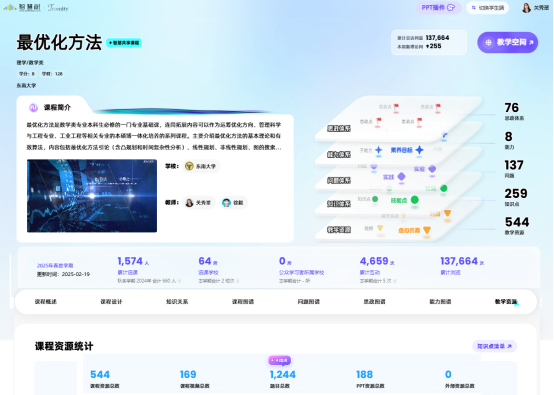 2024年12 月的世界慕课与在线教育大会上,教育部副部长吴岩报告中宣布高等教育正在加速进入智慧教育阶段,“智慧教育元年”已经到来。为了继续深入推进慕课西部行 2.0 行动,探索基于知识图谱新形态 AI 课程的智慧教研与教学形式,探索西部行从以“输血”为主向以提高西部澳门巴黎人娱乐城 老师智慧教学能力的“造血”方式转变,引领西部行下一步发展。澳门巴黎人娱乐城合作 、新疆大学、喀什大学、兰州理工大学在智慧树网的组织与支持下,基于 2024年秋冬学期的项目经验,决定在2025年春夏学期继续深度合作《最优化方法》课程知识图谱新形态 AI 教研西行项目,提升西部教师智慧教学理念及能力,共同探索基于知识图谱新形态 AI 课程的智慧教-研-学共同体。