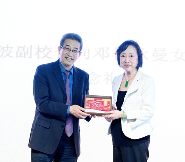 林郑月娥受邓杨咏曼女士委托在致辞中充分肯定了“咏曼园”及“咏曼报告厅”的建设成效,并分享了近年来与邓杨咏曼女士一起走访内地高校的经历。她表示,希望通过香港这一平台,促进内地与海外学者的互动交流,推动基础学科人才培养发展。