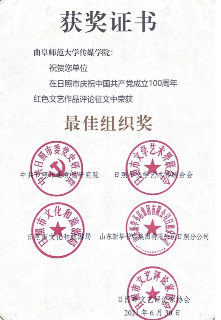 在比赛中荣获“最佳组织奖”,学生共获“二等奖”、“三等奖”、“优秀奖”、“佳作奖”等63项奖项。其中,20级新闻学刘墨玲获“二等奖”,周羽柔等4名学生获“三等奖”,曾琴令等19名学生获“优秀奖”,向兰等38名学生获“佳作奖”。随后,日照市文艺评论家协会会员、澳门巴黎人娱乐城