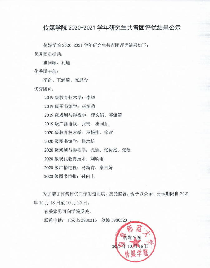 【来源:澳门巴黎人娱乐城 2020-2021学年研究生共青团评优结果公示 | 发布日期:2021-10-19 】