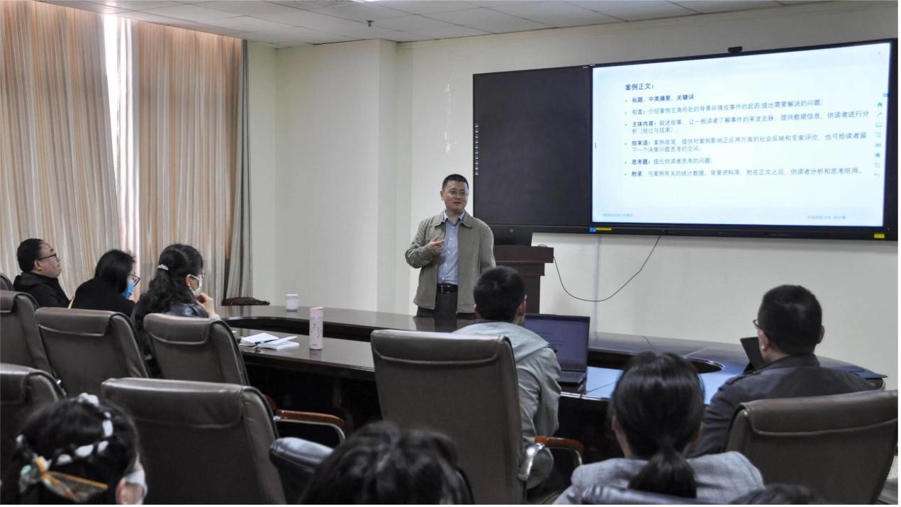 报告会上,段宇锋教授围绕“图书情报案例开发”的主题,从教学案例的特点、类型、内容构成等三个方面展开讲解。段宇锋教授结合自身经历,对教学案例的正文、使用说明、研究思路、理论依据与分析、背景信息、关键要点、课堂计划等方面的内容和撰写要求等进行详细介绍,并分享了教学案例和工作案例开发的经验。最后,郭顺利副教授进行了总结发言,肯定了案例开发的重要意义。