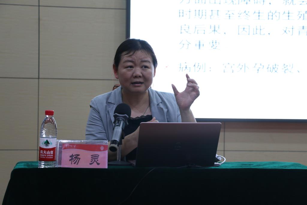 讲座伊始,杨灵通过生活中的真实案例警示同学们关注自身健康的重要性。她就女性的生殖结构系统以及一生各阶段的生理特征进行了详细介绍,呼吁同学们一定要正确认识并保护自己的身体。她还向同学们科普了经期以及生育方面的知识,用理论与实际案例相结合的方式,提醒大家一定要养成良好的卫生习惯,自尊自爱。最后,杨灵列举了几种常见的女性生殖系统疾病,分享了自己多年的所见所闻及心得体会,告诉同学们发现问题要及时去正规医院就医,不必过于恐慌,要树立科学意识,合理调节情绪。