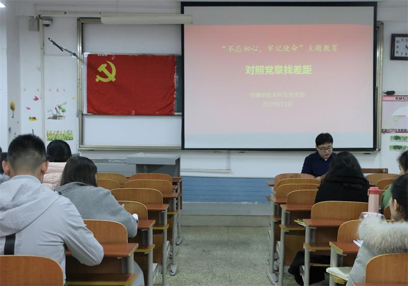 “不忘初心、牢记使命”主题教育领导小组《关于在“不忘初心、牢记使命”主题教育中对照党章党规找差距的工作方案》文件。随后,结合本科生党支部学生党员工作实际,提出广大学生党员要认真学习《中国共产党党内重要法规汇编》,逐段逐句学习党章、《准则》、《条例》并做好学习笔记,以党章党规检视自身在服务广大师生的过程中存在的问题。最后,广大与会党员在自身学习党章党规的基础上,结合自身学习和工作中的实际进行了逐一发言。张洪孟对大家的发言进行点评。