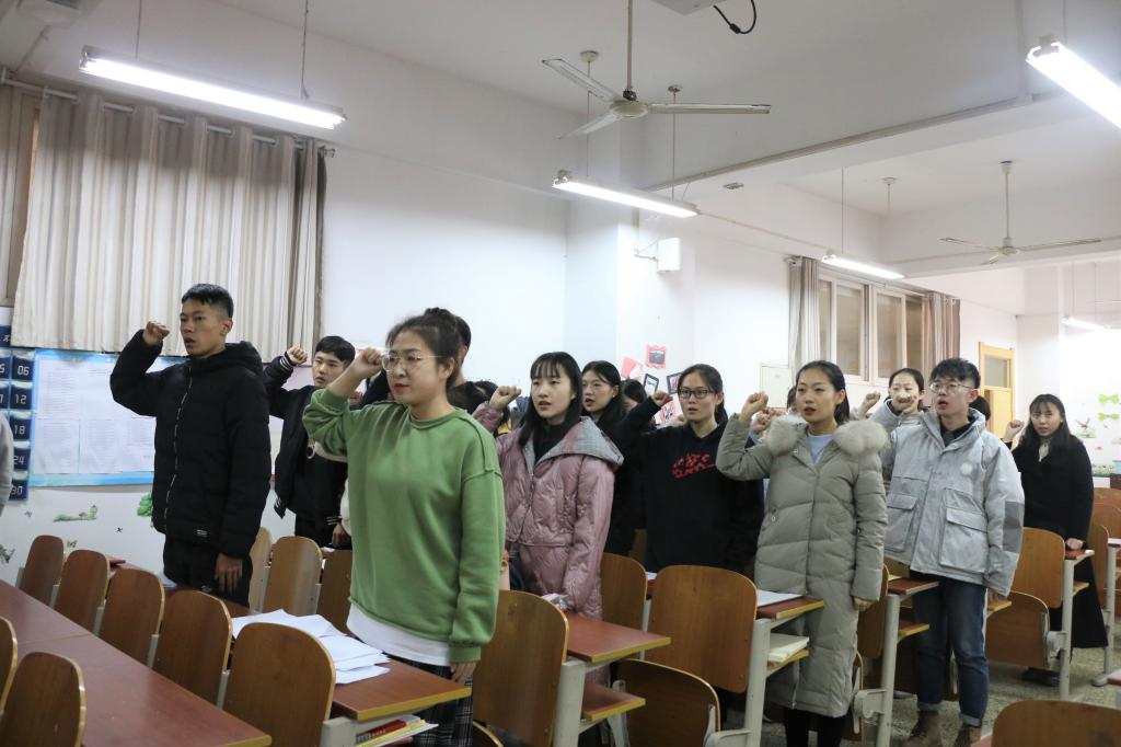 会议伊始,各发展对象分别宣读自己的入党志愿书,表达出对党的崇敬和入党愿望,阐述个人的入党动机,并向党组织汇报个人表现。接着,入党介绍人介绍申请人基本情况,阐明自己的意见,组织委干事宣读申请人综合政审情况,并对该成员进行讨论,之后由发展对象进行表态。随后,张洪孟宣读相关决议。根据几位发展对象的一贯表现和党组织的培养情况,经本科生党支部全体正式党员投票表决,一致同意接收宋维等8位同学为中国共产党预备党员。最后,预备党员面向党旗庄严宣誓,表明对党和国家的忠诚和发挥模范带头作用的决心。张洪孟对此次会议进行总结,他希望广大学生党员在学习和工作中要坚定政治立场,严格要求自己,提高自身修养,切实发挥先锋带头模范作用。