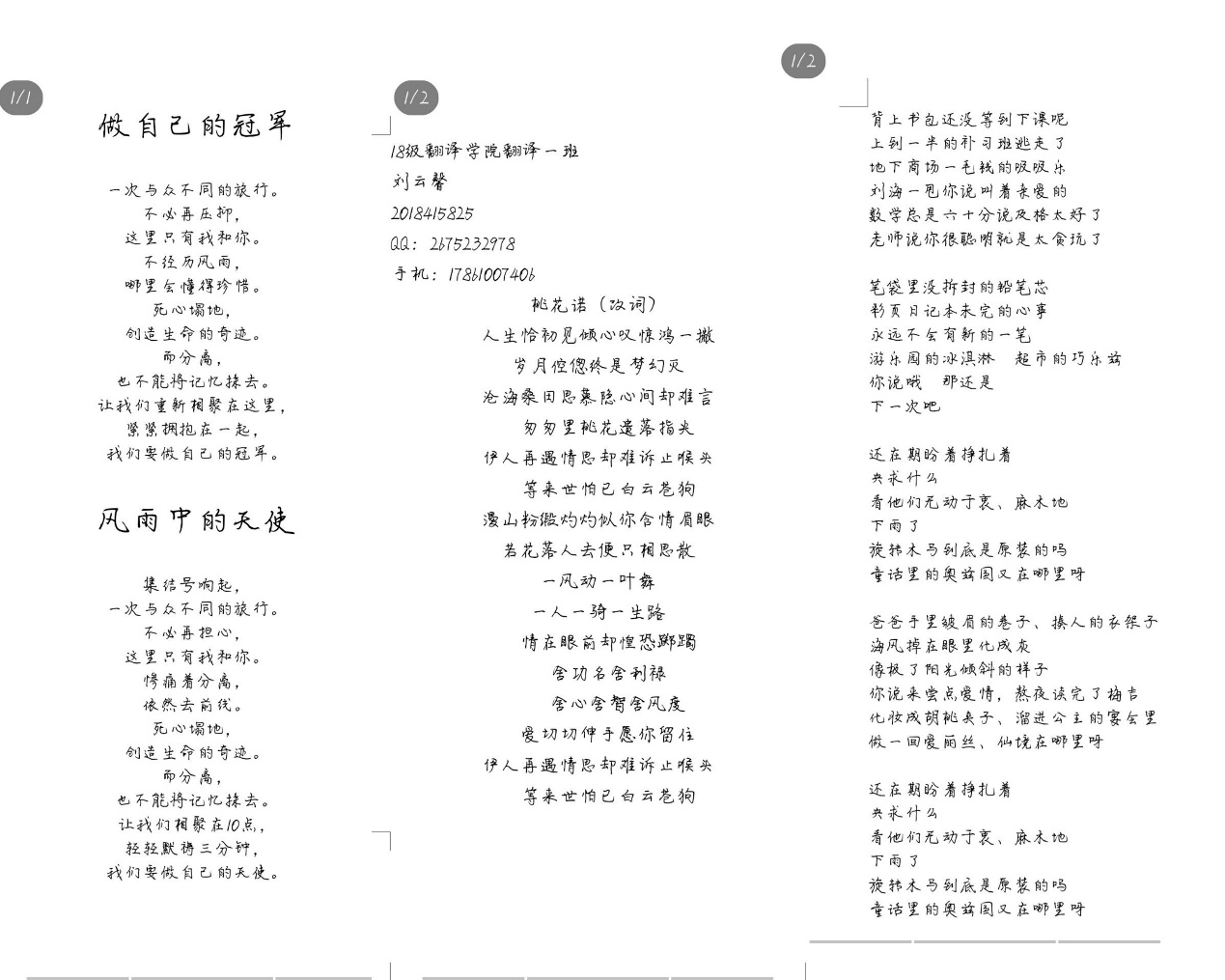 教育技术学一班的李荣智的《做自己的冠军》《风中的天使》