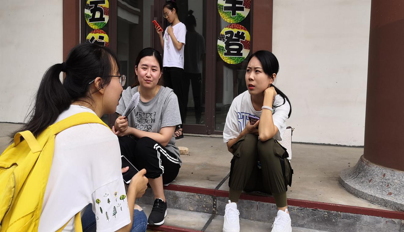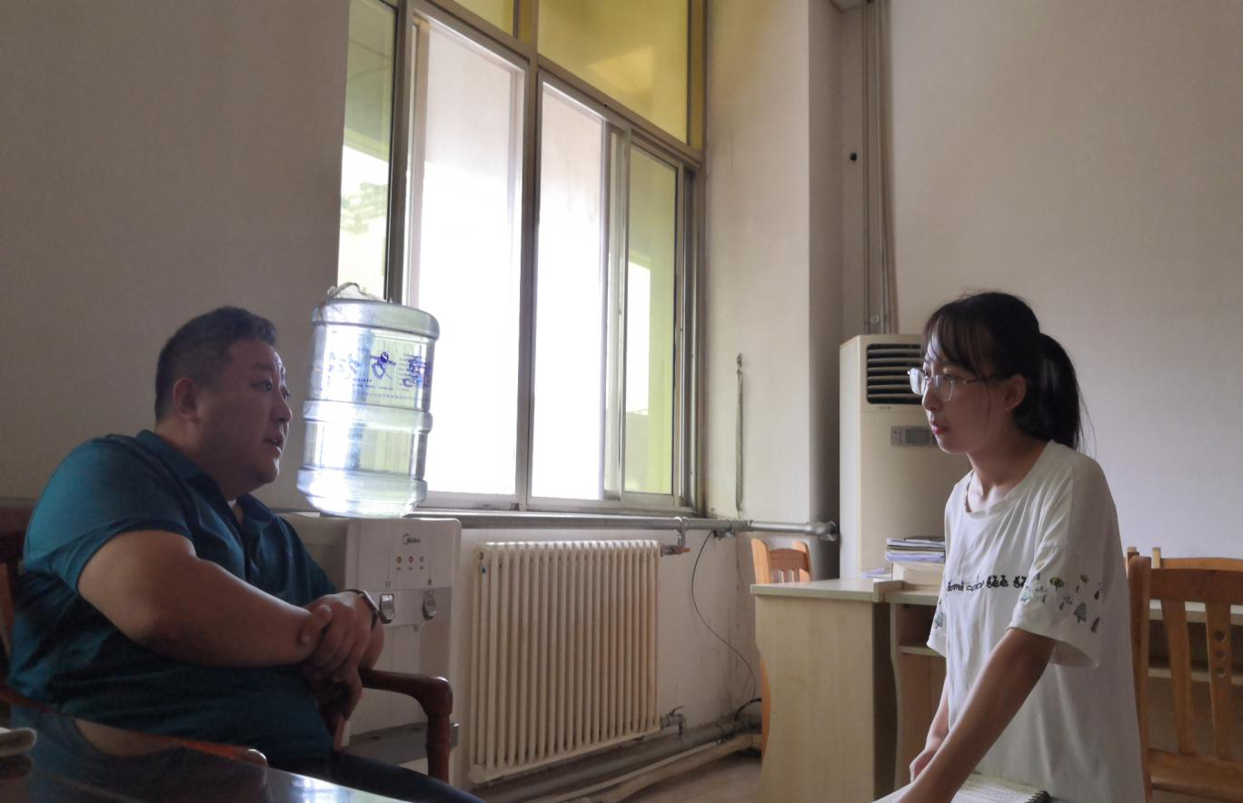 演出结束后,实践队员对青年剧团的一位女演员进行了采访交流。通过交谈得知,青年团里的演员大多2008年就开始了专门的茂腔学习,个人爱好和家人的支持让他们走上了剧团演出的道路,每天上八节专业课,练习唱念做打、奏乐弹唱等基本功,夜以继日的枯燥练习练就了他们舞台上的扎实唱功。由于电子信息技术和互联网的迅速发展,在泛娱乐化的时代下,年轻人大多更关注新奇的娱乐节目,对传统曲艺的关注越来越少。由于老一辈的戏剧艺术家年龄增长、缺乏潜心学习茂腔的年轻人,茂腔也陷入了着发展困境。青年剧团的演员们希望凭借自己的努力,在传统演出的基础上,与互联网技术和现代信息媒体相融合,采用更新颖的方式让更多的年轻人了解茂腔、喜欢茂腔,感受到优秀传统文化的底蕴与魅力,从而让茂腔这项非物质文化得到更好的继承和发展。