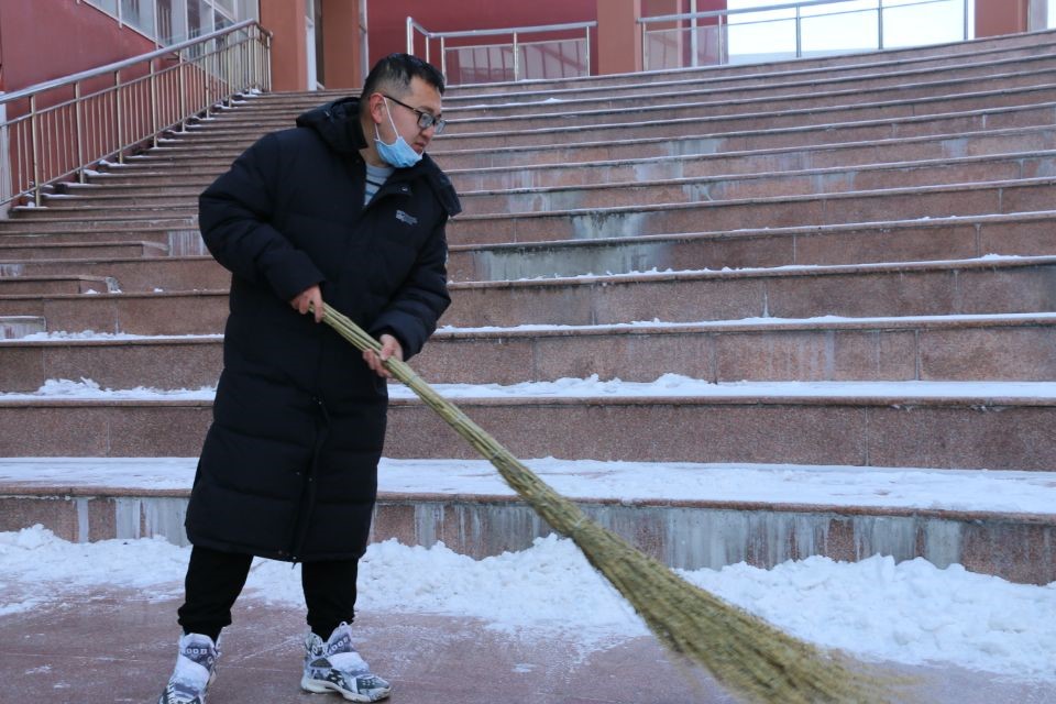 于12月30日14:00开展了扫雪除冰活动。党委副书记徐正伟,辅导员绪慧敏、乔希、刘扬帆、商秀英带领部分学生干部参与了本次活动。
