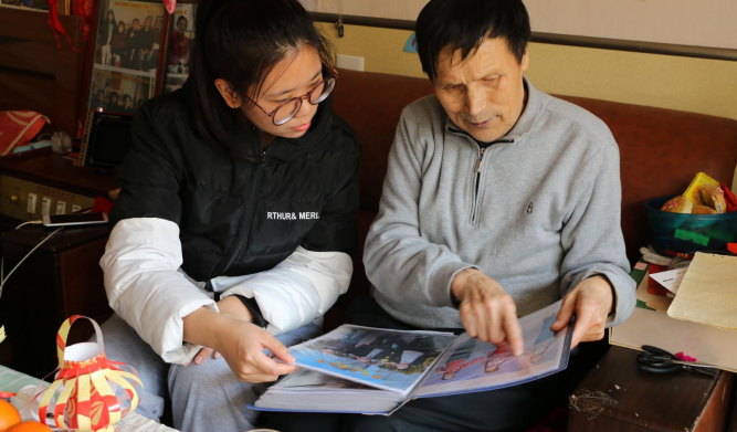 了解到敬老院的有关情况后,志愿者分小组进入老人房间开展志愿服务,陪老人聊天、为老人捶背、帮助修理录音机等。活动过程中,老人们同志愿者分享家人照片,讲述自己年轻时期生活的点滴,并告诫同学们要珍惜时间、努力拼搏,勇敢地追求自己的梦想,创造美丽人生。大家其乐融融,畅快交谈。临行时,老人们与志愿者惜别,并同大家合影留念。