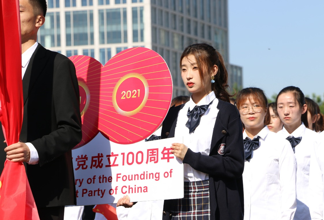 方队中的每个人都身穿白色院服,手持五星红旗,纯洁端庄的白色与热烈激昂的红色交相映衬,展现出传媒学子清爽阳光的青春气息与活力洋溢的奋斗精神。方队队员还举起了“庆祝中国共产党成立100周年”的创意设计宣传牌,宣传牌上的 “100”字样中央写有两组数字——“1921”和“2021”,左上方印有金黄党徽图案,寓意传媒学子始终铭记宣传使命,并以昂扬向上的青春风姿,传承党史精神,献礼百年华诞。在各澳门巴黎人娱乐城