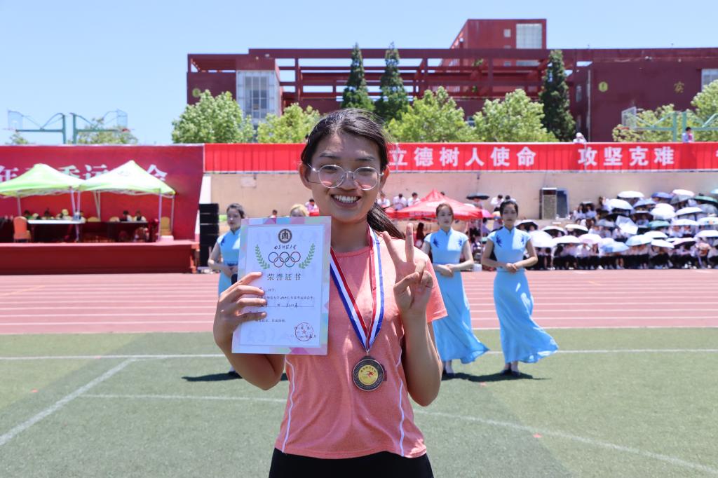 你笑魇如花,明媚的阳光洒在你明媚的脸上。奔跑后的疲惫汇聚在汗水里,但你灿烂的微笑融化了3000米长跑的艰辛,也见证了传媒学子坚持必胜的决心。