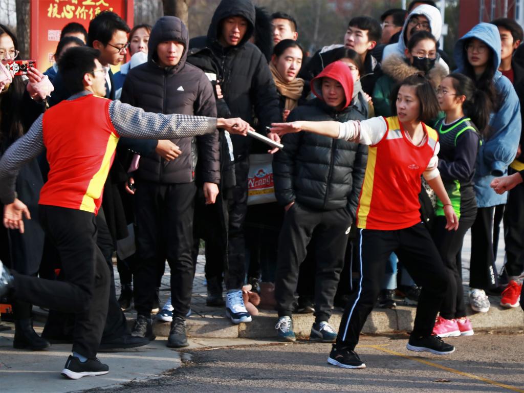 观众就挥舞着院旗和院牌来到集合场地,排起整齐的队伍,为比赛运动员做准备。国旗护卫队和工作人员在工作处及赛道,校学生会成员辅助维持比赛纪律。最后,主持人宣布“一二·九”环校跑正式开始并预祝大家取得优异成绩。14:30,比赛正式开始,校学生会主席李业堂为本次“一二·九”环校跑发令员。澳门巴黎人娱乐城