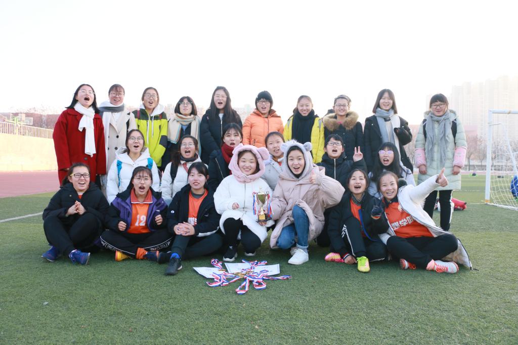 第十二届五人制足球比赛女子组冠军,李玲玉同学获得最佳门将奖,覃华英同学获得最佳射手奖。