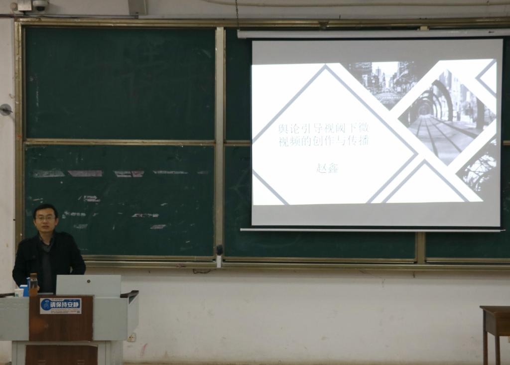 会议伊始,张守荣老师对赵鑫老师进行相关介绍。随后,赵鑫老师为同学们做了以“舆论引导视阈下微视频的创作与传播”为主题的培训。首先,赵鑫老师向同学们讲解了微视频的定义,而后向大家介绍了微视频的四个特点——短小精悍、碎片化、轻量化和社交化。之后,赵老师又介绍了微视频的类型及传播平台,并通过播放生活、娱乐等多个不同类型的微视频来展现其多元性和广泛性。视频播放结束后,赵鑫老师又为同学们讲解了新时代背景下,舆论引导工作的重要性以及新时代舆论引导工作对微视频的新需求,即微视频在国家政策传播方面更加亲民化,舆论引导轻量化。最后,赵老师总结了微视频创作与传播的几点要求:要兼顾政治与艺术、理性与情感;既要奏响主旋律,又要贴近生活;鼓励创新,传播正能量以及重视宣传与策划。