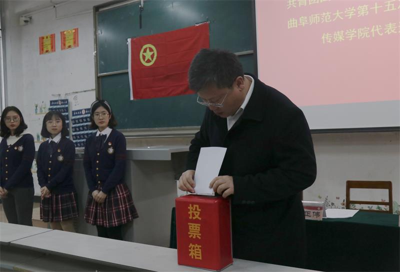 第十五次学生代表大会的候选人预备人选。会议进行第二项,团委书记张守荣宣读审议通过的监票人和计票人名单,确定张风姣老师为监票人,学生干部孙小钧、毕文倩为计票人。随后张守荣老师详细介绍了投票选举的规则和注意事项,保证此次选举的公开性与公平性。接下来,以无记名投票方式差额选举出正式代表。投票结束后,经过监票人和计票人的认真审核,最后由监票人张风姣老师宣读选举结果,确定最终名单。