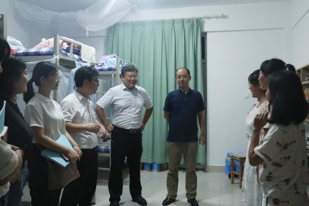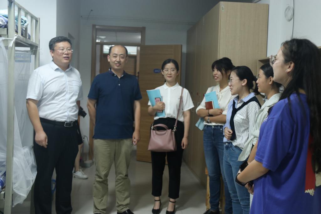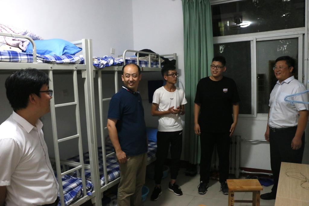 党委副书记徐正伟、副院长赵可云、16级辅导员张洪孟、18级辅导员绪慧敏、19级辅导员乔希及学生会主席团成员深入2019级新生宿舍看望新生,查看宿舍基础设施建设情况,并与新生进行亲切交流。