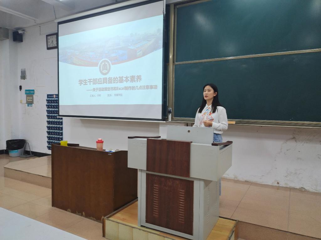 “广大青年要肩负历史使命,坚定前进信心,立大志、明大德、成大才、担大任,努力成为堪当民族复兴重任的时代新人。”会议伊始,乔希引用了习近平总书记的讲话内容,以激励广大学生干部要努力迎接困难、不断克服短板。随后,乔希老师讲述了关于活动策划书撰写和Excel制作的几点注意事项。她介绍了策划书的基本构架与排版,强调在进行活动策划时要结合活动的目的性、可行性、创新性、延续性进行具体分析。在EXCLE制作中,应坚持“明确性、规范性、简洁性”的原则,并结合具体案例,对同学们日常工作中易犯的错误进行了分析总结。最后,乔希老师指出严谨认真的态度是保证工作有序进行、活动顺利开展的关键,希望所有学员在日常工作中认真负责、踏实努力。