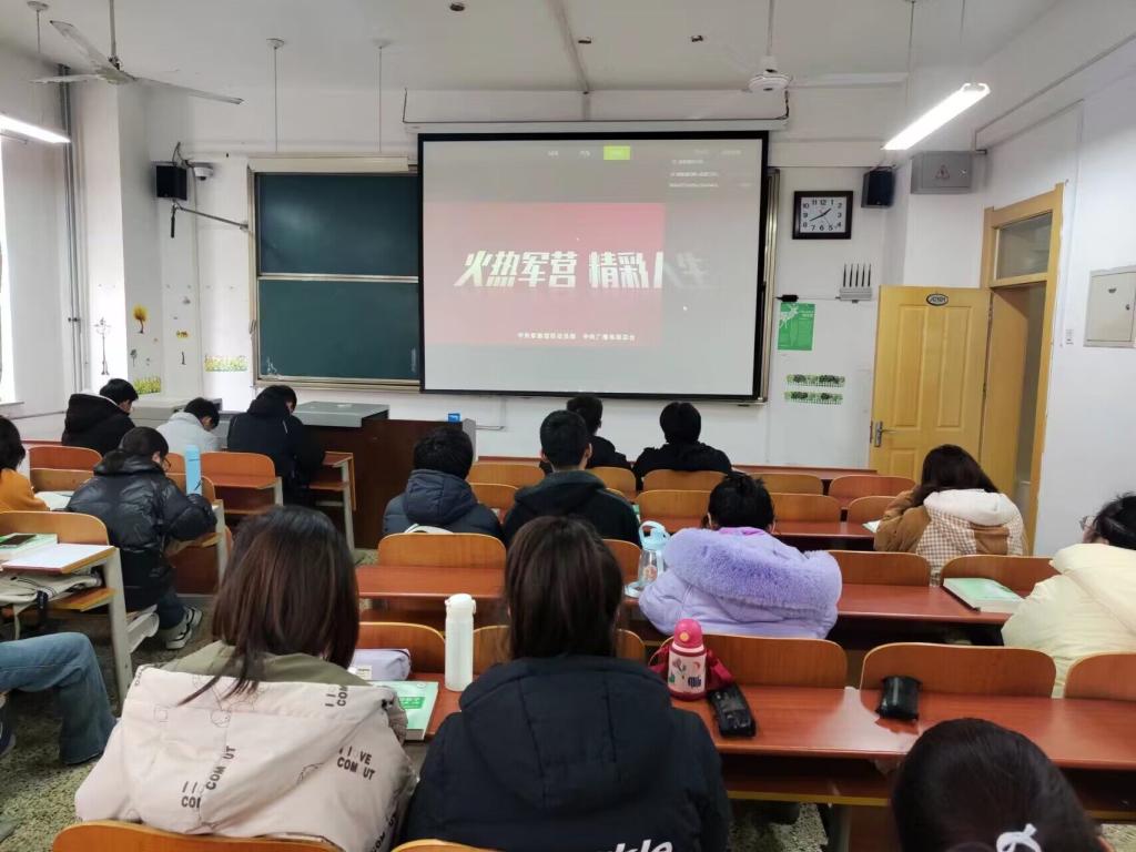 组织学生通过网络平台集体观看2023年征兵公益宣传片——《火热军营 精彩人生》。