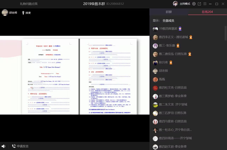 副教授邱春艳担任主讲人,采用腾讯会议线上开展,2019级全体本科生参与学习。