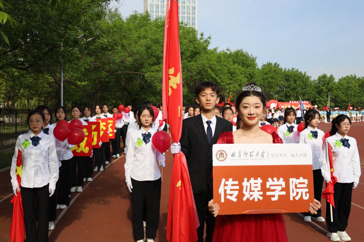 (日照校区)春季运动会于西操场隆重举行。开幕式上,传媒学予以整齐有力的动作及朝气蓬勃的精神面貌展现传媒风采,成为田径场上的夺目亮点。比赛过程中,传媒健儿们团结一致、勇往直前,首日赛程捷报频传。