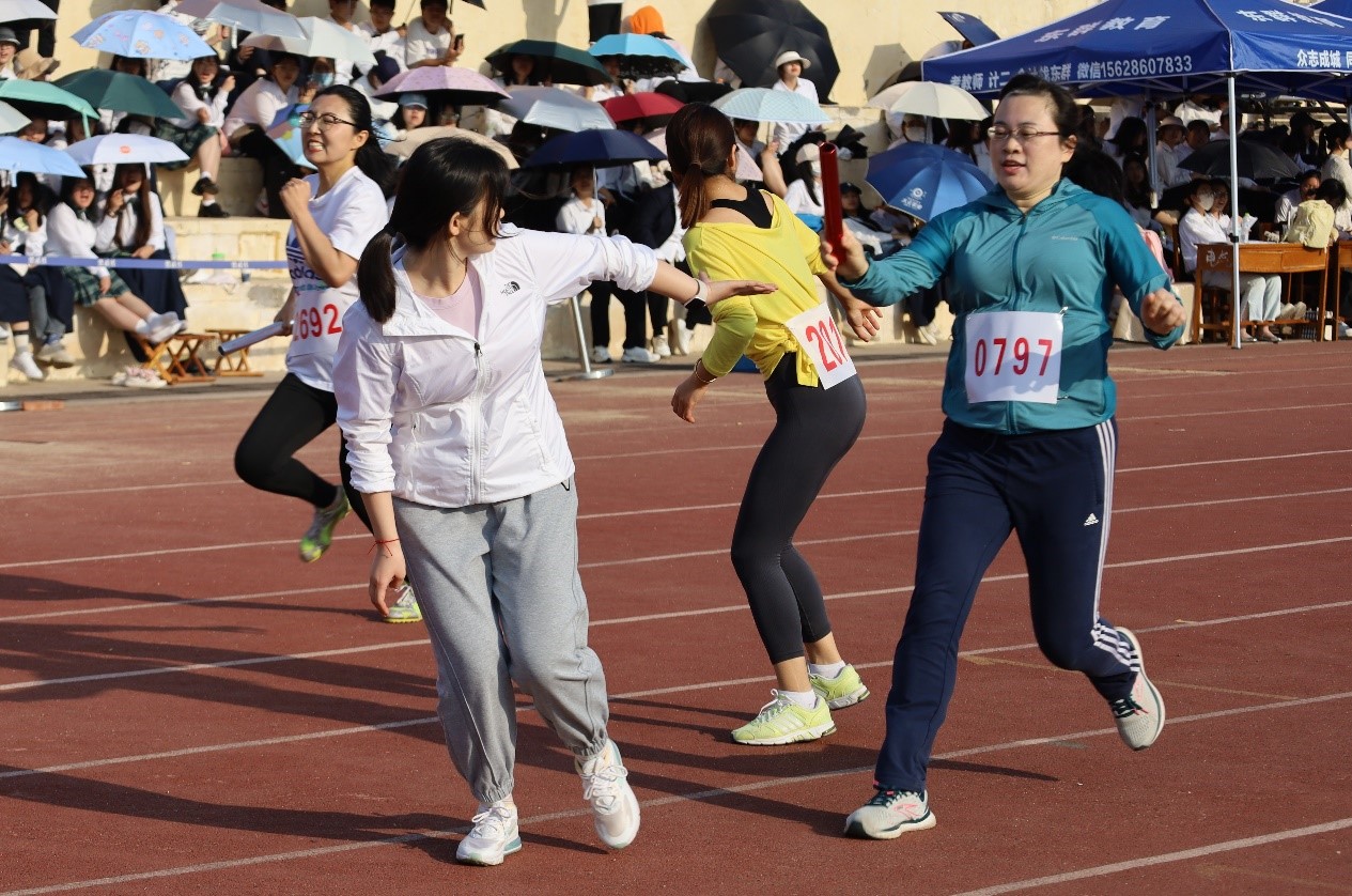 教工组的老师们更是不甘示弱,一根小小的木棒,传递的是勇气和力量;一根小小的木棒,演绎的是奋斗和拼搏!