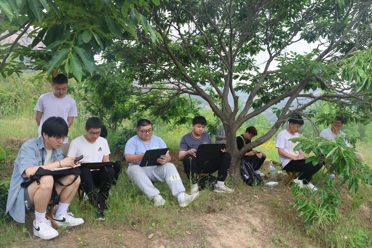 教师带领下,本次写生实践活动分别前往了白鹭湾、五莲山、九仙山、大青山等风景区。走进自然,孔勇老师讲到,要加强心力、脑力、眼力、手力,做到用心感受、用脑创作、用眼发现、用笔记录。同学们席地而坐,手拿画笔,用全新的视角观察自然,并将课堂上学到的艺术理论运用到写生与创作当中。老师在过程中就写生与色彩画的特性、画面的构图与处理方面提供了指导和建议。写生结束后,老师带领同学们总结绘画经验并分享写生收获。同学们纷纷表示,写生在观察景物外形特征、大小比例、透视变化上的助益明显。