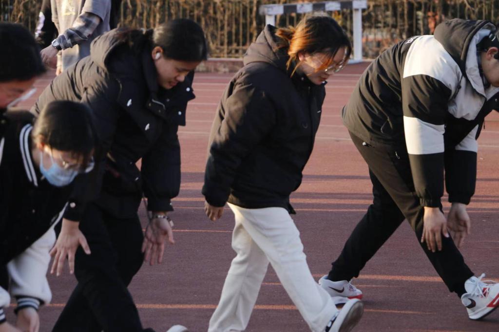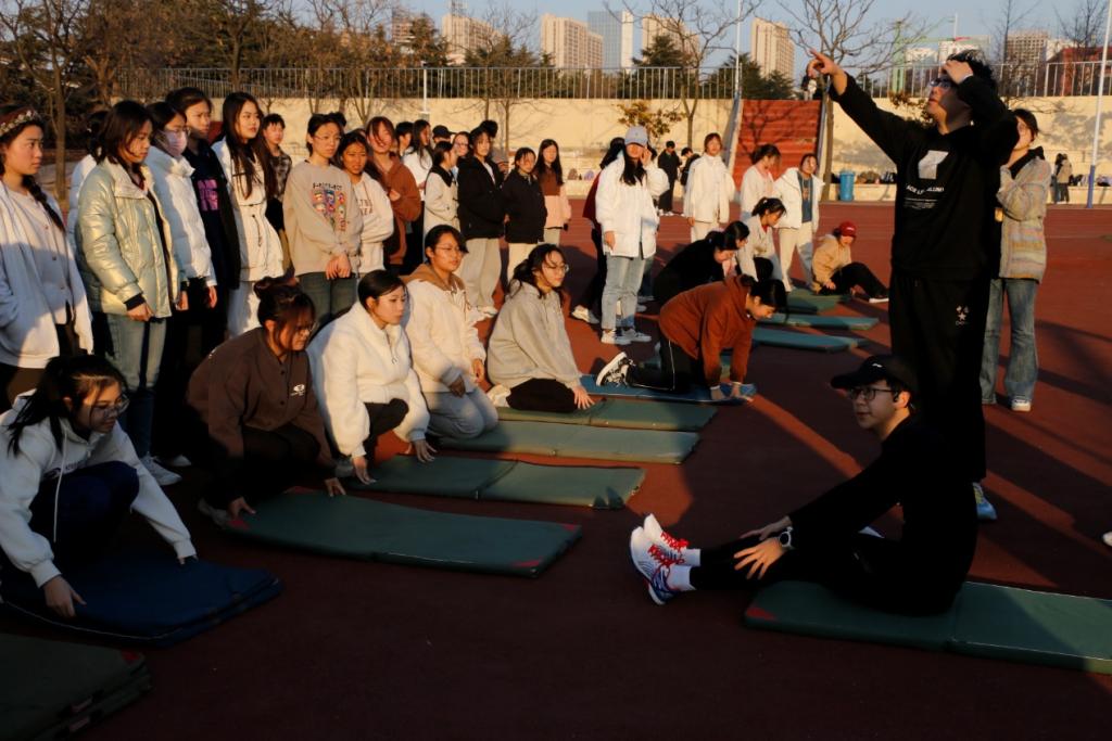 体育部的部员们负责组织春训学生进行训练,尽心尽力,有序高效。在周浩阳示范拉伸动作过后,他们时刻关注动作不规范的同学,及时给予悉心指导,帮助同学们正确拉伸,避免受伤。