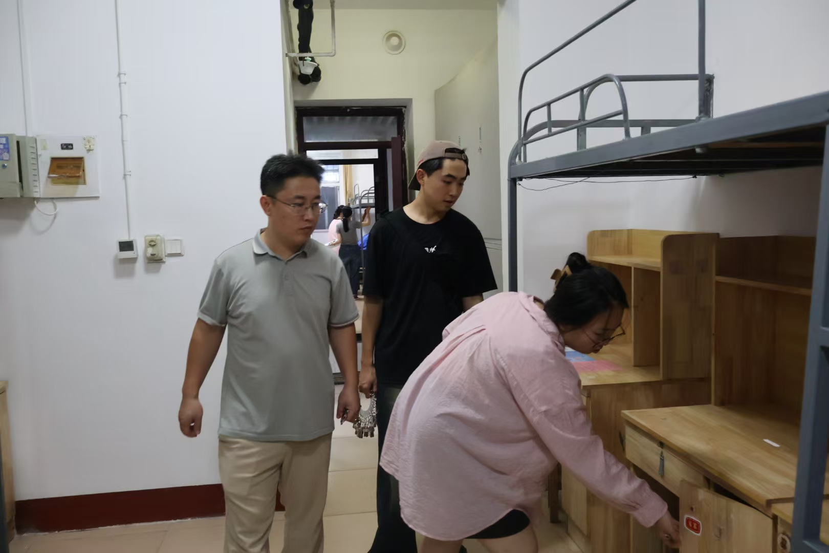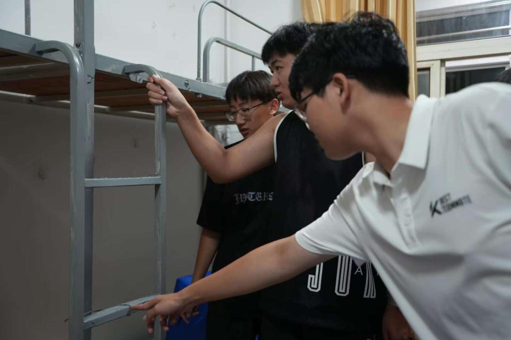 辅导员张洪孟组织带领宿管部与安全委的学生干部提前前往新生宿舍,开展全方位的卫生检查与安全隐患排查工作。