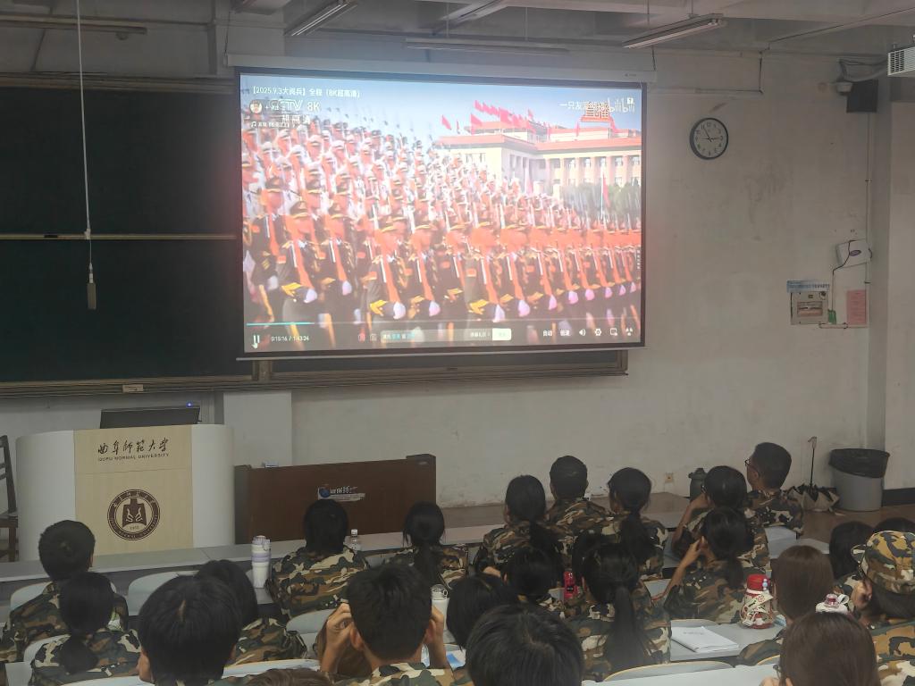 张洪孟围绕历史背景,为2025级新生们简要介绍了中国人民抗日战争的艰辛历程与伟大胜利的历史意义,并叮嘱大家要从历史中汲取奋进力量,坚定理想信念。班会为新生们播放了《纪念中国人民抗日战争暨世界反法西斯战争胜利80周年大会》视频,新生们全神贯注,认真观看大会盛况,聆听历史回响,当看到当威武的徒步方队迈着整齐划一的步伐通过镜头、先进的武器装备依次亮相、抗战老兵方阵带着历史的荣光缓缓前行时,不少同学眼中满含敬意。