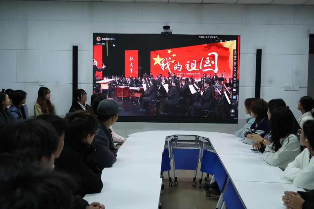 组织师生于JC813教室集中观看了建校70周年办学成果展演直播。