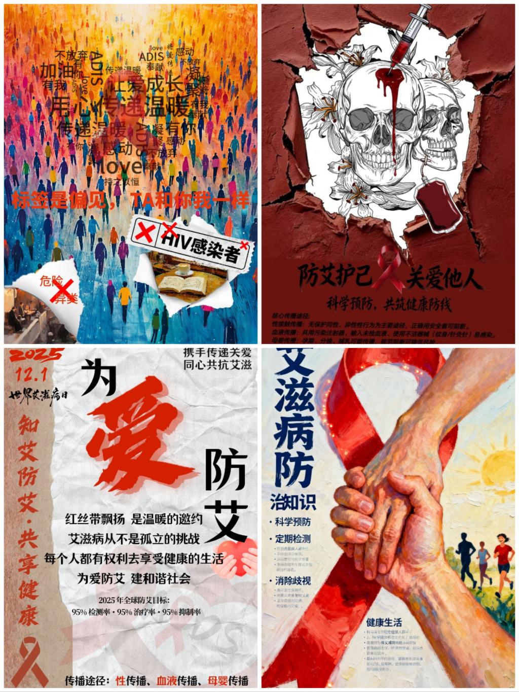 大赛以“‘绘’聚防艾力量”为主题,吸引了众多同学积极参与。参赛者充分发挥专业特长与创意才华,将艾滋病传播途径、科学预防方法、正规检测渠道等核心知识,与鲜明的视觉色彩、凝练的文案设计相融合。作品不仅澄清了学生群体中常见的认知误区,也传递出对艾滋病患者的尊重与关怀,成为移动的防艾科普载体,使科学知识在视觉呈现中深入人心。经评选,本次比赛共产生一等奖3名、二等奖6名、三等奖10名及优秀奖若干。