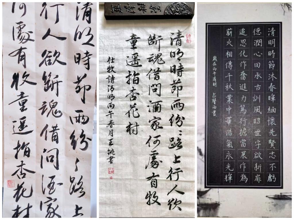 此次书法活动不仅为校内书法爱好者搭建了展示、交流与实践的平台,助力成员精进书写技巧、提升审美素养,更引导大家在笔墨创作中深刻体悟清明所蕴含的追思明礼、崇德向善之风。活动有效增强了参与者的文化认同感,营造了热忱传统、雅好艺术的校园文化氛围。