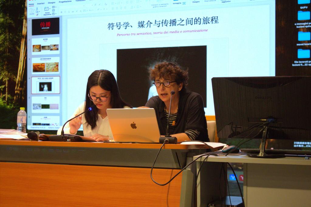 Muscardin Laura以“传播:从符号到大众媒体” 为主题,从史前洞穴壁画切入,系统梳理了人类传播行为的起源和媒介发展历程,深入解读了符号学的核心概念、图像的跨文化传播力,以及本雅明的“机械复制”理论,引导师生以批判性视角审视传播行为的多元属性。