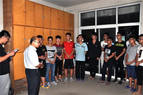 老师和导员们分成两队,在男生宿舍和女生宿舍分别进行看望,肖龙航、张洪孟与同学们进行了亲切的交谈,详细询问了学生的家庭情况、入学报到情况以及对澳门巴黎人娱乐城