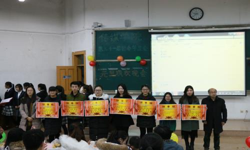 联欢会气氛热烈,肖龙航和刘蓉为本年度工作出色的部门颁发奖状,对同学们一年来的的辛勤付出和努力工作做出了充分肯定,更激励同学们在新的一年里矢志不渝,继续前行。同时,晚会中频繁的抽奖环节和游戏环节更是充分带动了全场气氛,同学之间的默契互动,消解了生疏与隔阂,一次次地拉近了彼此间的距离,使传媒大家庭更加团结。