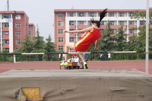 跳高场上,一抹红色的身影如飞燕般轻盈,一跃而上。没错,她就是朱竹。在女子跳高决赛中以1米46的成绩问鼎冠军并成绩打破了校记录。