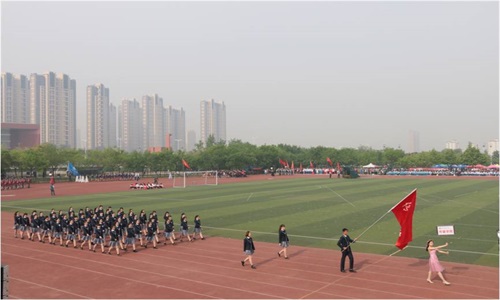 学子组成的开幕式方队整齐地走过主席台。他们用青春的朝气与活力向所有人展现了独特的传媒风采。他们意气风发,他们勇于拼搏,他们在这次运动会上展现了他们矫健的身姿。