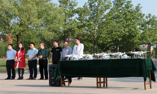 航拍社的成立给予大力支持,并祝愿航拍社能够发挥特色、吸引人才。“航拍体现了传媒特色,必须走在最前面”,他强调,航拍作为一个新的发展方向,必须积极引导。接下来,由李兴向航拍社社长刘晓颖授旗。随后,由专业技术人员放飞了航拍器。最后,在场的领导老师以及航拍社社员共同合影留念。刘晓彬和陈鹏飞为同学们讲解了航拍的基本知识,同学们认真学习并有了很大的收获。