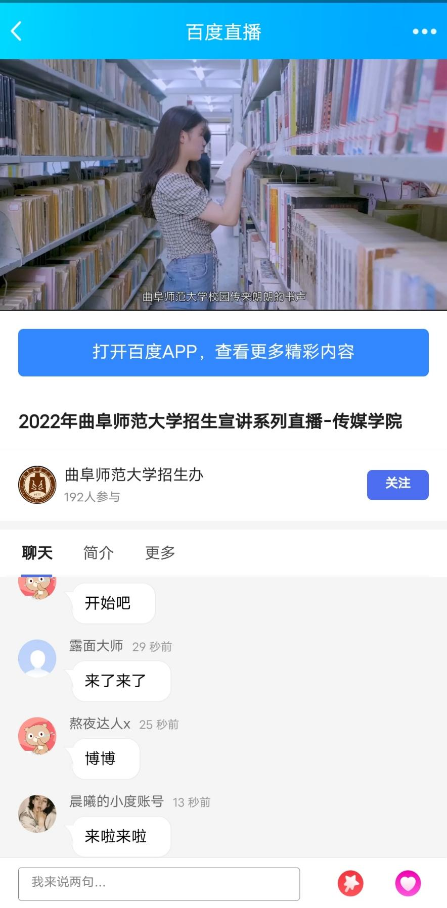 衷心期待学生的到来。直播充分发挥了互联网媒体平台信息传播高速、高效的特点,与观众进行线上互动,在线解答招生问题,受到学生家长们的一致好评。