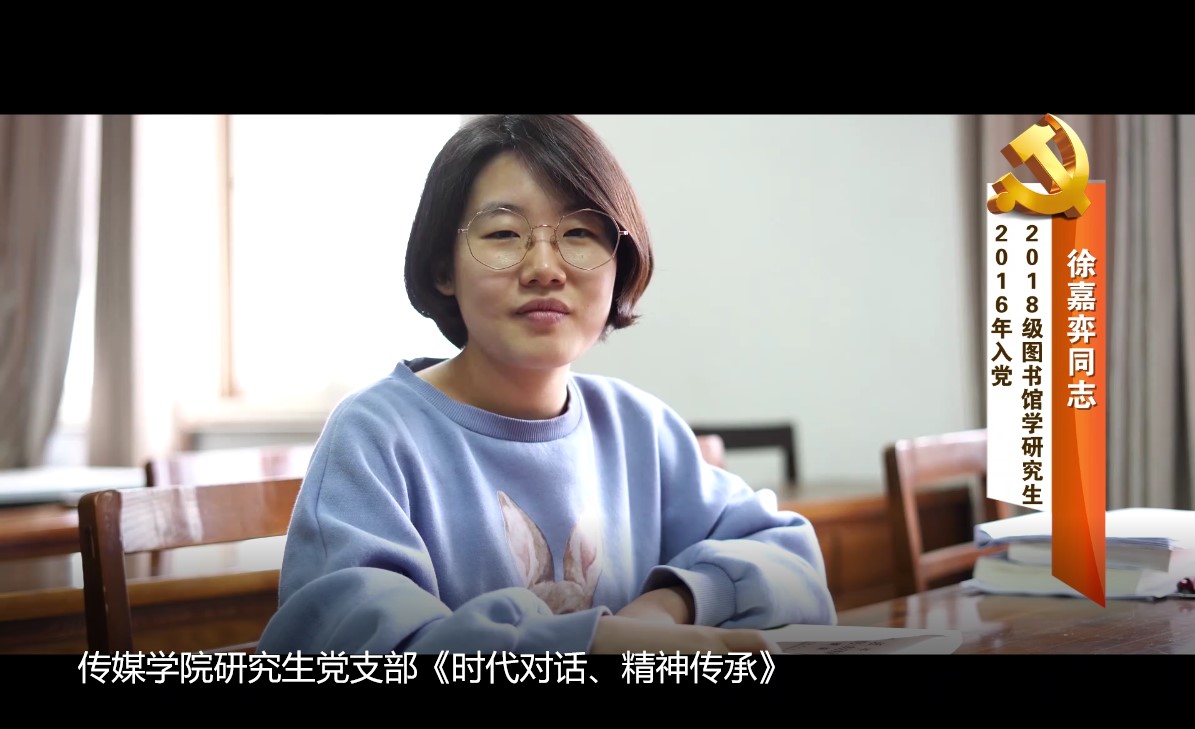 的优秀研究生代表徐嘉弈同志,她是在2016年加入中国共产党。徐嘉弈本科期间曾担任党支部宣传委员、团委副书记兼组织委部长,她用实际行动告诉我们,在实现中华民族伟大复兴中国梦的时代,要求我们不忘初心、牢记使命,脚踏实地,不断前行。