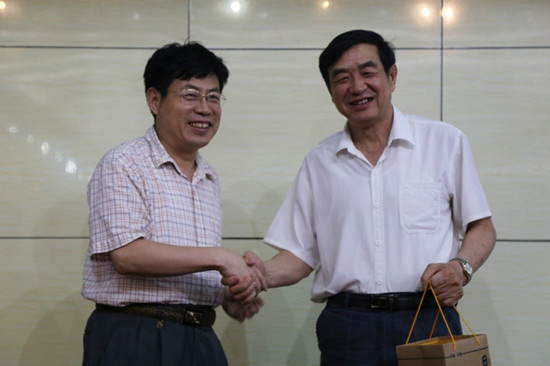 党委书记李兴保教授向桑新民教授赠送纪念品,以表示对桑教授的欢迎和感谢。