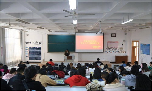 党委书记李兴保、党委委员王焕景、研究生党支部书记吴运明对十九大精神进行了解读,会议由王焕景老师主持。
