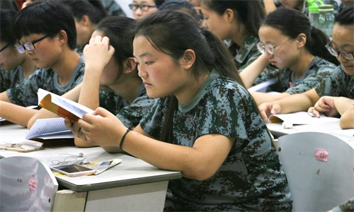 讲解员们向新生发放了《澳门巴黎人娱乐城
