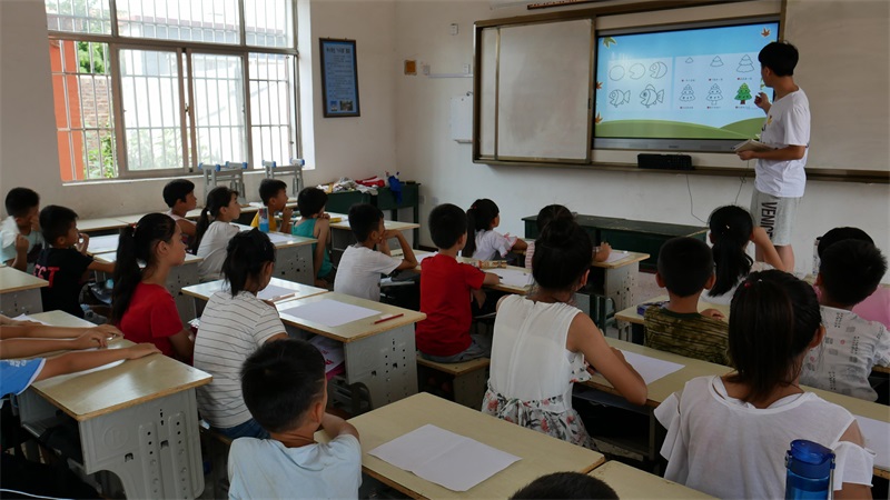 7月20日,smile星光支教团为孩子们开设了美术课和体育课。在美术课上,美术老师教孩子们画风景画,孩子们在老师的引导下画的十分认真,有些孩子还根据自己的想法在画面上填充自己喜欢的颜色。在体育课上,大多数男孩子们比较热衷于打篮球,在炎热的篮球场上,一个个矫健的身影让我们看到了孩子们的青春活力。女孩子们多才多艺、兴趣广泛,有的转呼啦圈、有的投沙包,有的跳绳,十分具有活力,队员们看到这一场景后也加入其中。